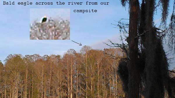 At one point someone notice we were being watched by this bald eagle just across the river.