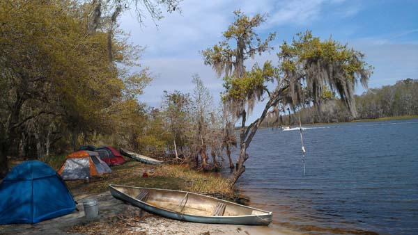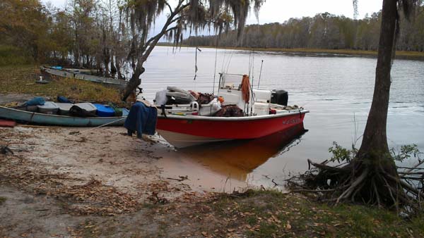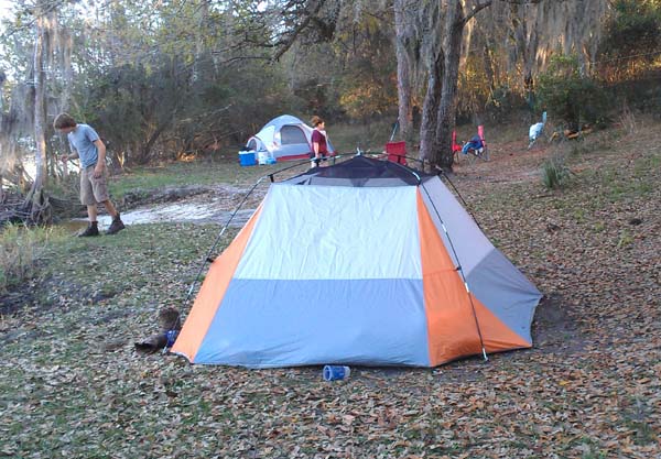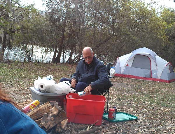 In the Fall of 2009 we camped at Candler's Point on Lake Hatchineha. We wanted to go back there again for this campout, but the water levels were a little high for that campsite - not flooded like last fall, but the campsite would have been smaller due to the higher water level. So we decided to camp on the higher banks of the Kissimmee River just a little South of there.